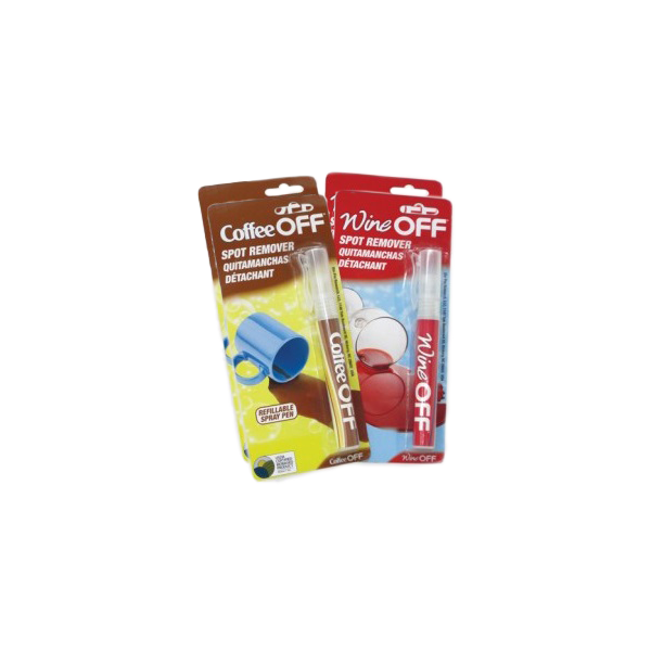 Wine Off and Coffee Off Stain Remover does not contain alcohol, peroxide or bleaching agents so it is safe to use around people and pets. It is also effective on food residue and other organic stains, particularly those that are red-based. Click here to view tips and advice for using Wine Off and Coffee Off.